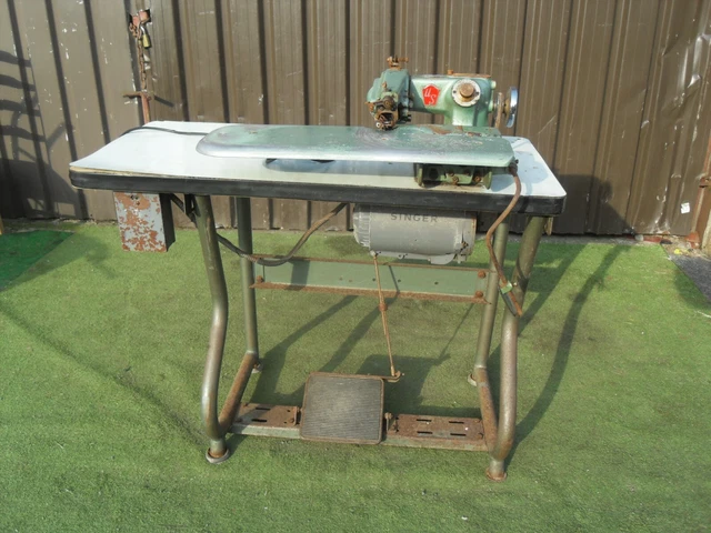 Vintage Singer 31 20 Industrial Sewing Machine Sn H1151884 With Antique American Industrial Treadle Sewing Machine Table With Old Singer Sewing Motor Style Sa932 Steampunk